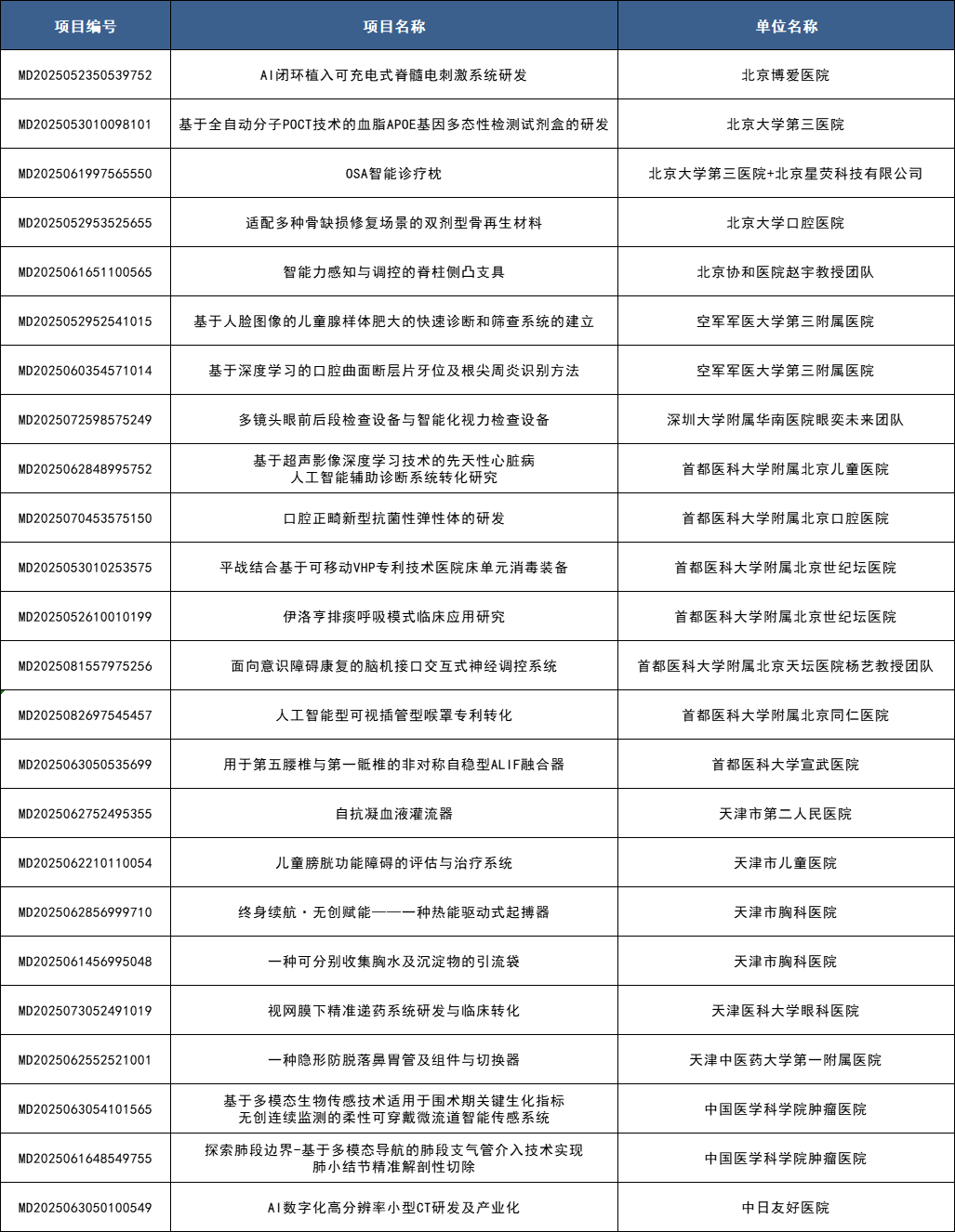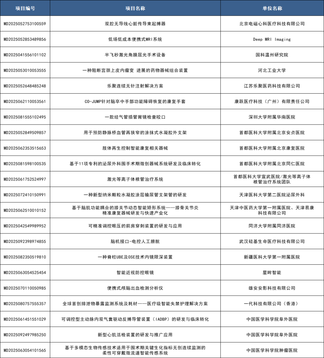 项目入围公示|第八届(2025)中国医疗器械创新网创业大赛总决赛
